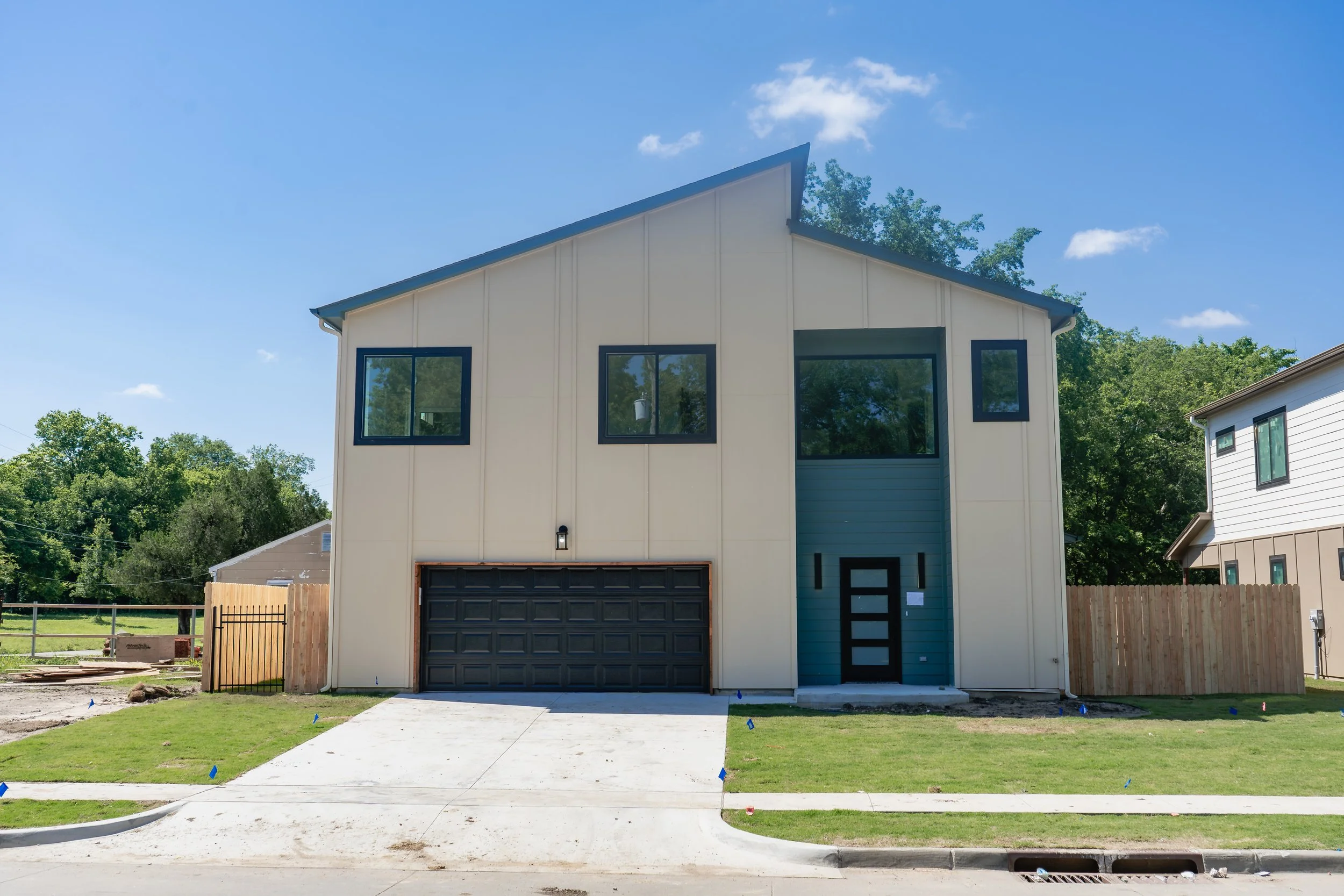While three of the buildings are wholly dedicated to their residents, the fourth includes a large garage space for the management’s vehicle storage needs, which led to a taller main story and higher second story.